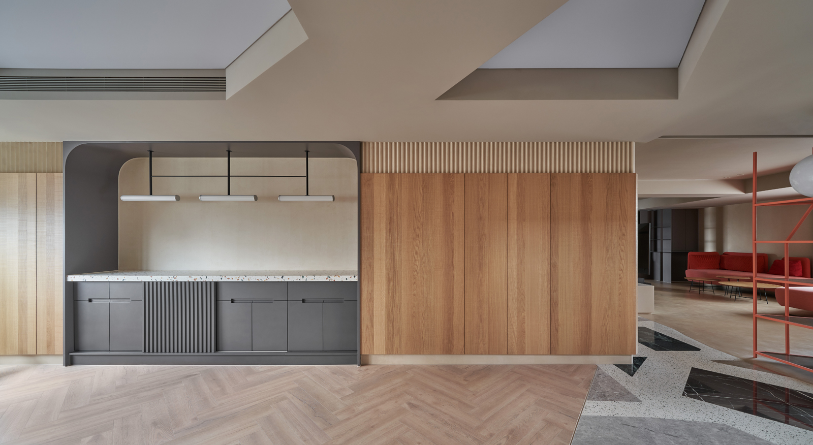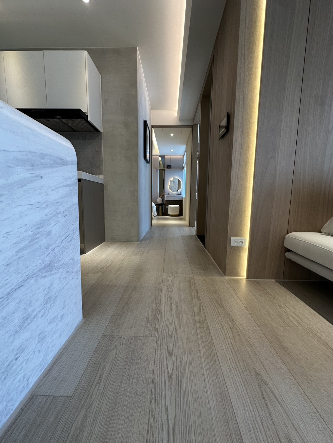 公設空間可依場域需求靈活選用多元建材,透過材質搭配,展現空間層次與整體設計質感。